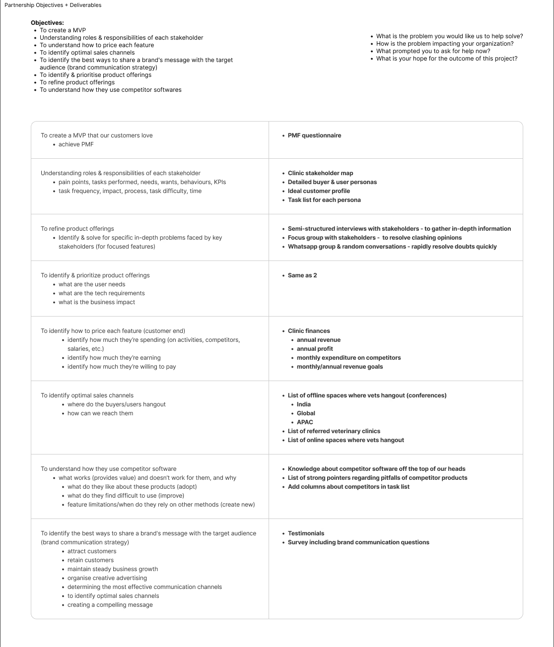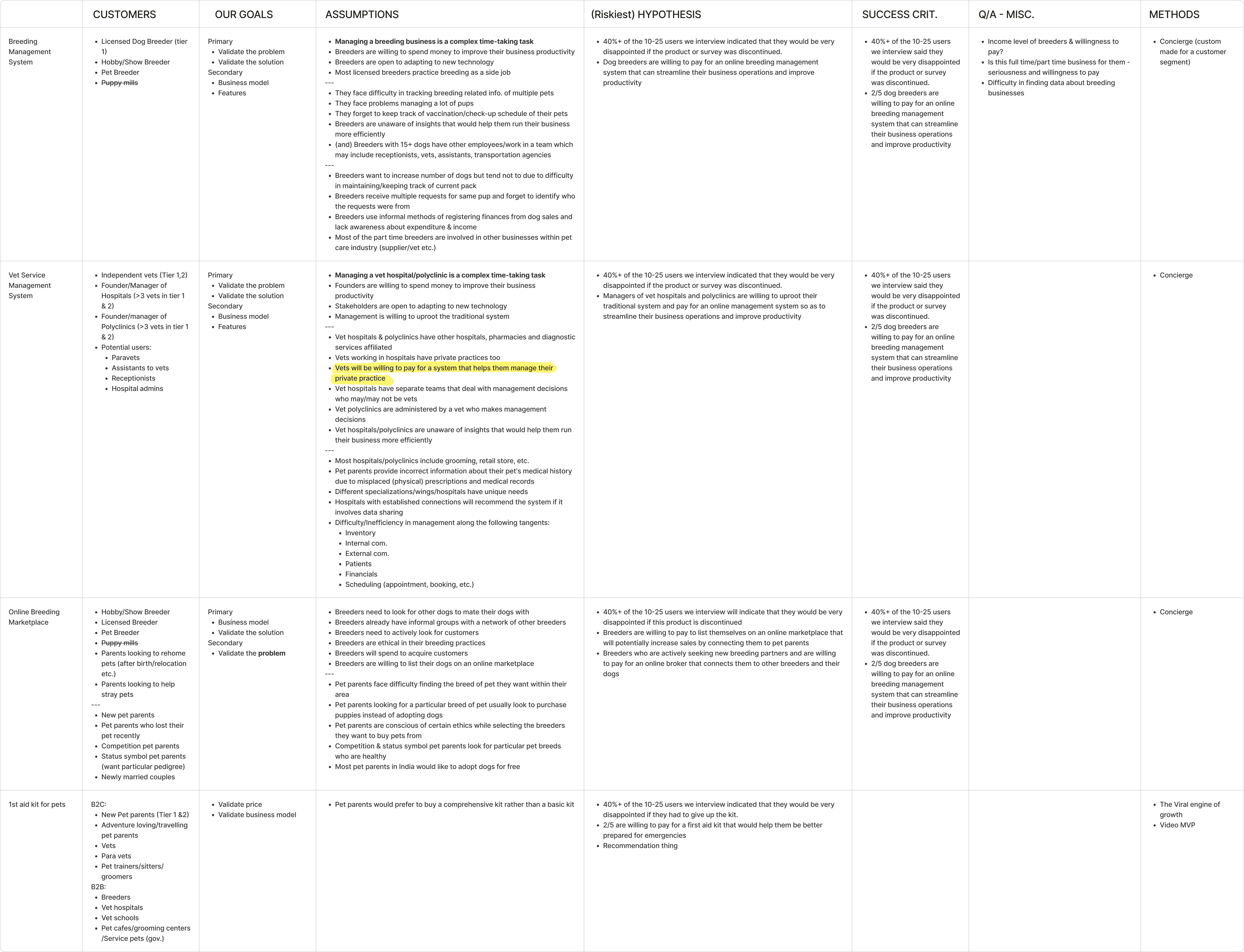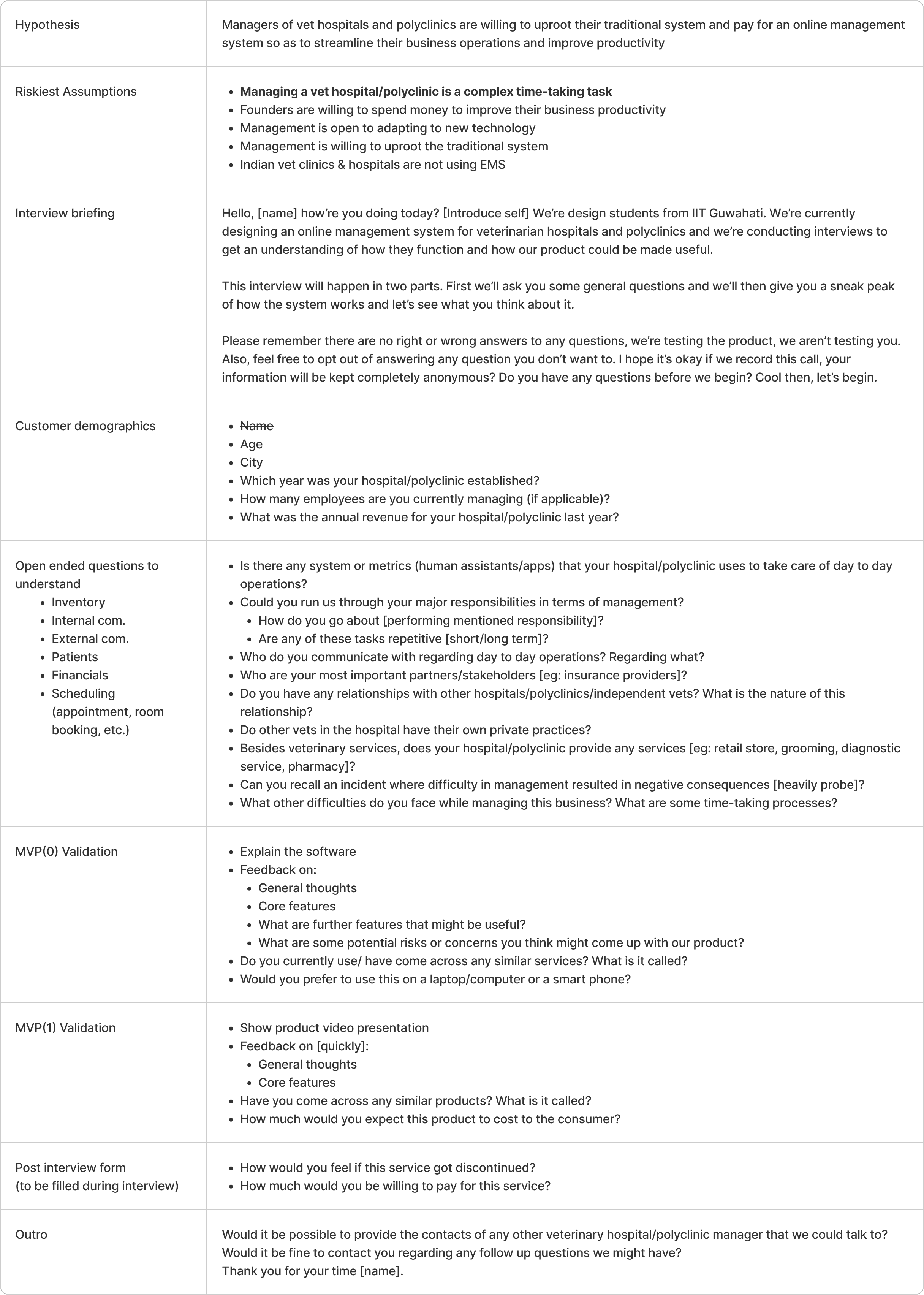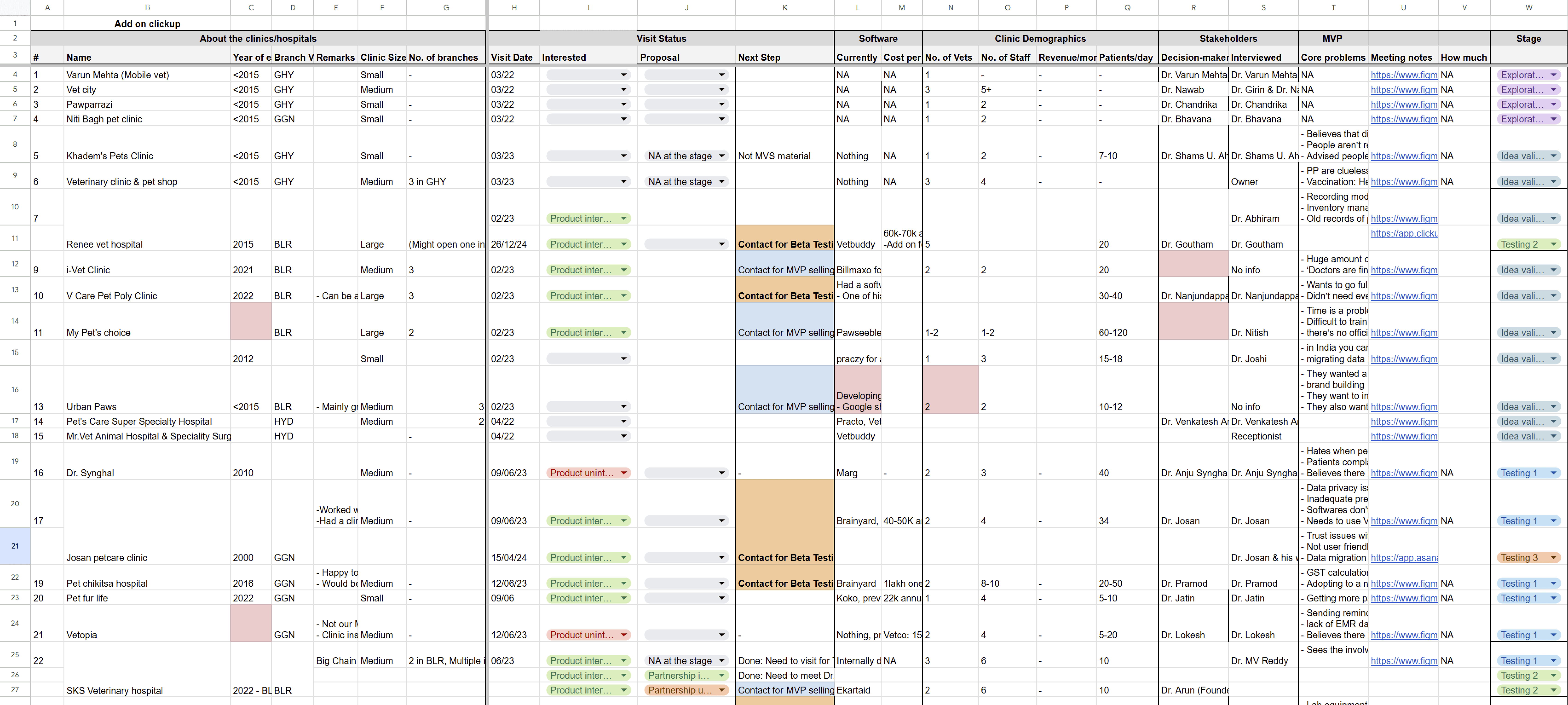 Identified our minimum viable customer segment - newly established veterinary clinics in India with 3 - 10 vets