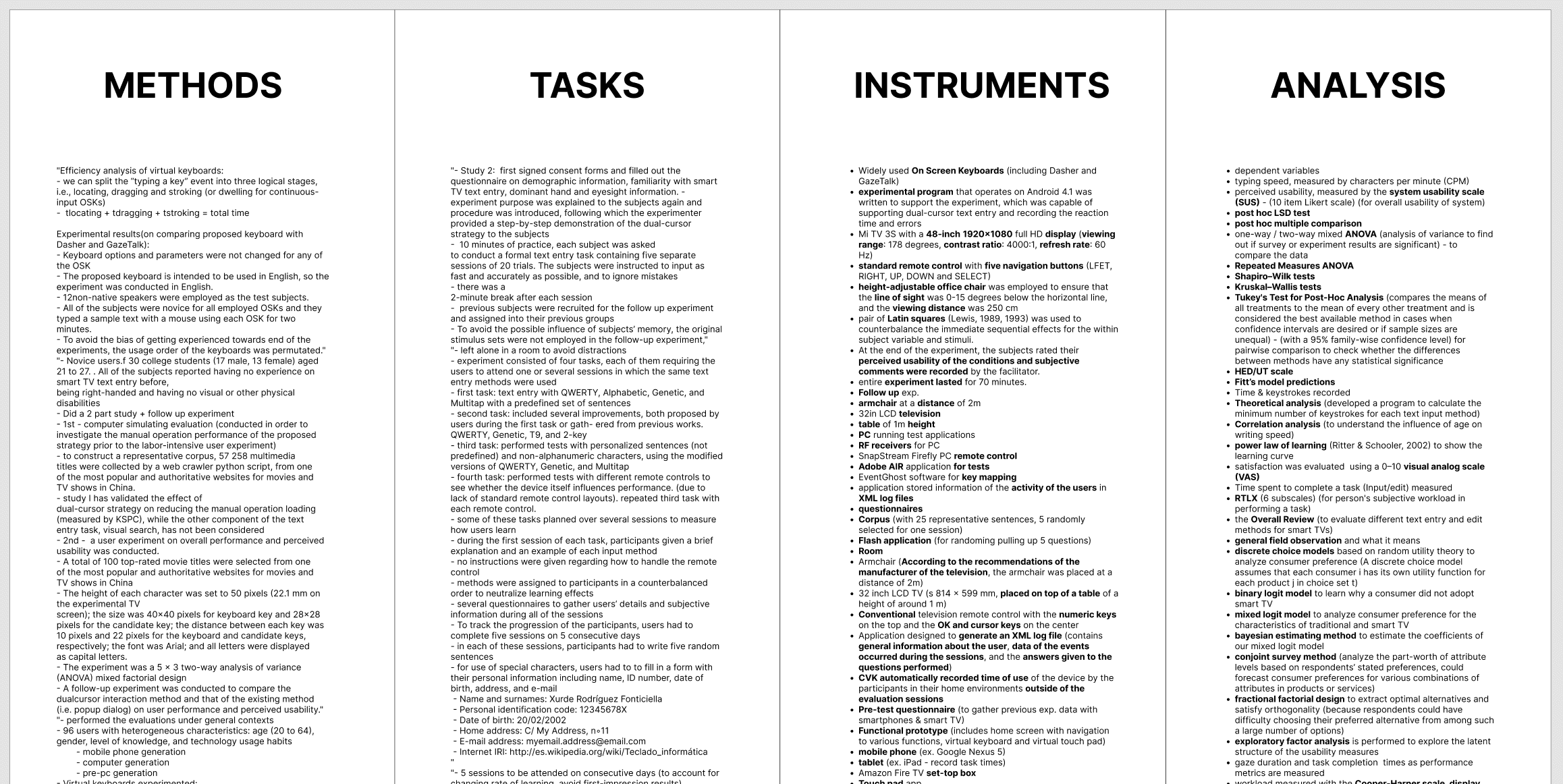 We broke down the experiment design conducted in examined literature to understand how to navigate our study method, tasks, instruments and analysis techniques.