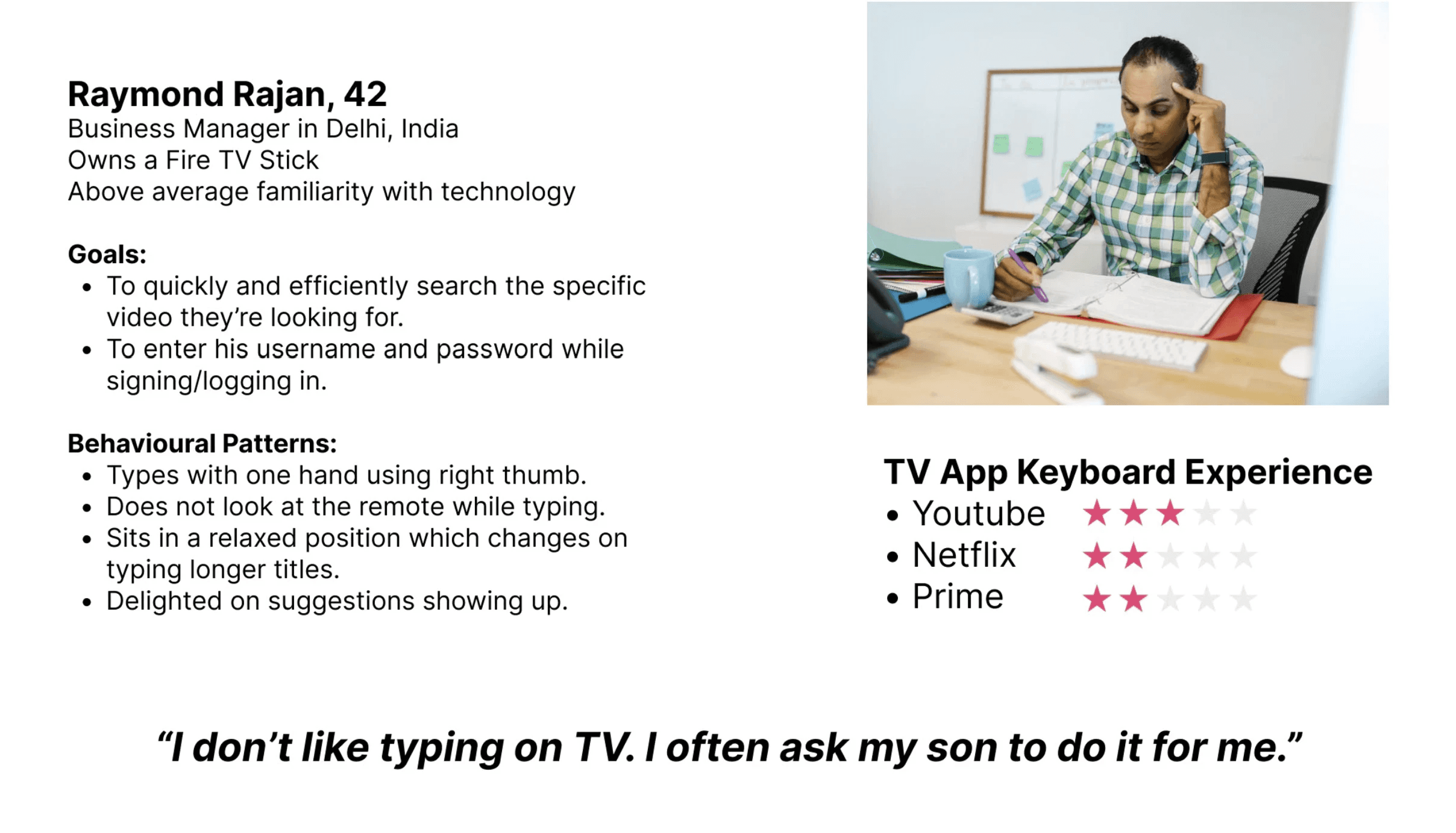 Participants were able to recognize the Square Alphabetic keyboard as the on-screen keyboard used in OTT platforms and stated their familiarity with it from previous experience. Post usage, they commented on the overall experience being “fine”, “like the usual” or “it was ok”.