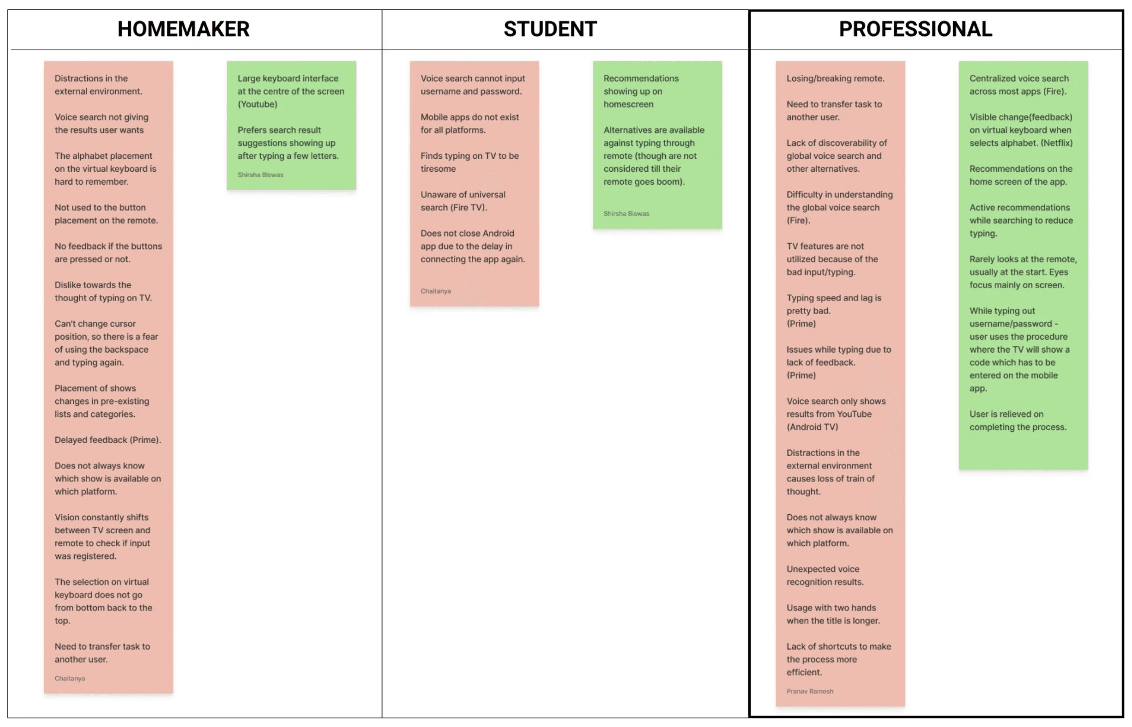 We aggregated the pain points and gain points from the study to create pros and cons lists.