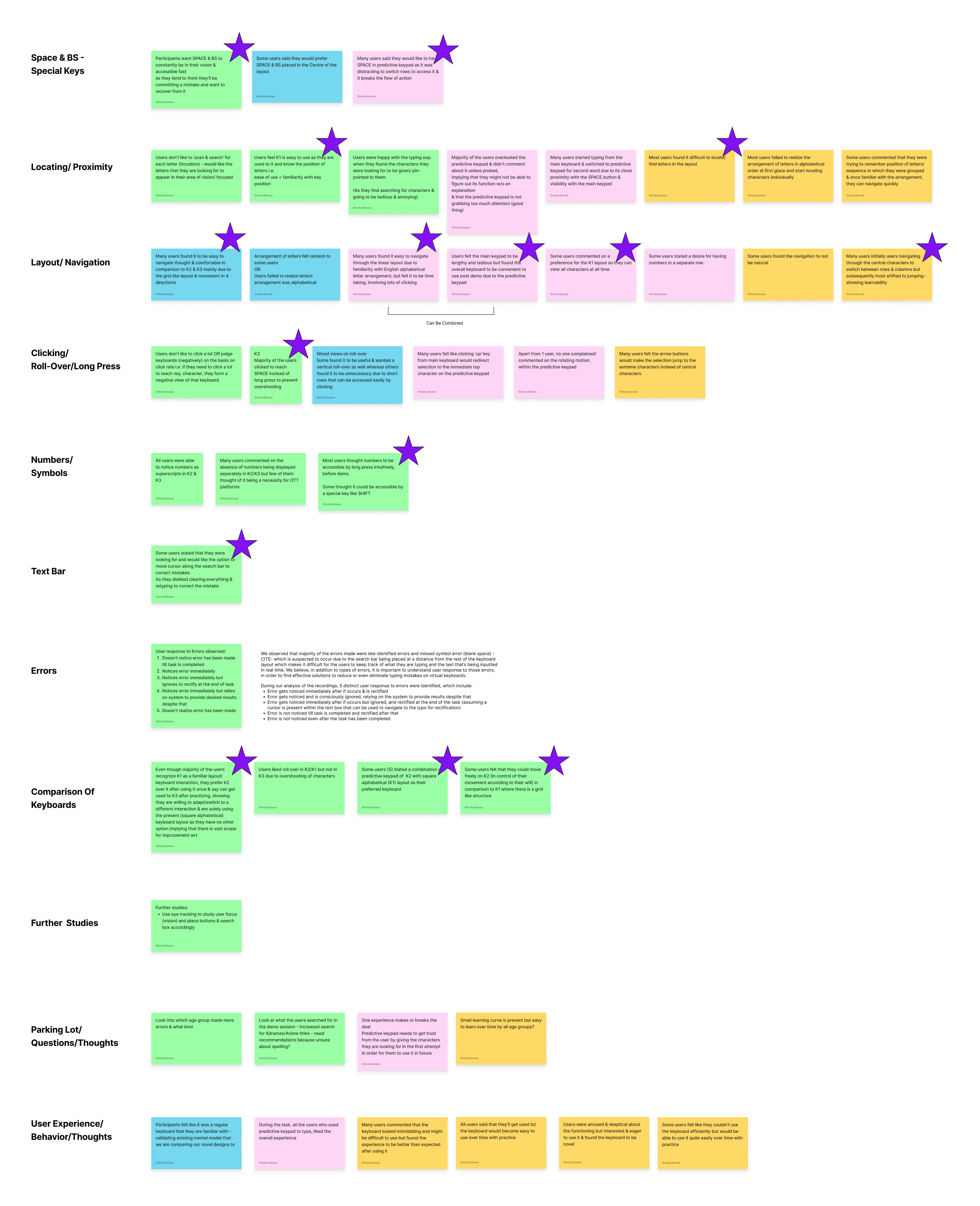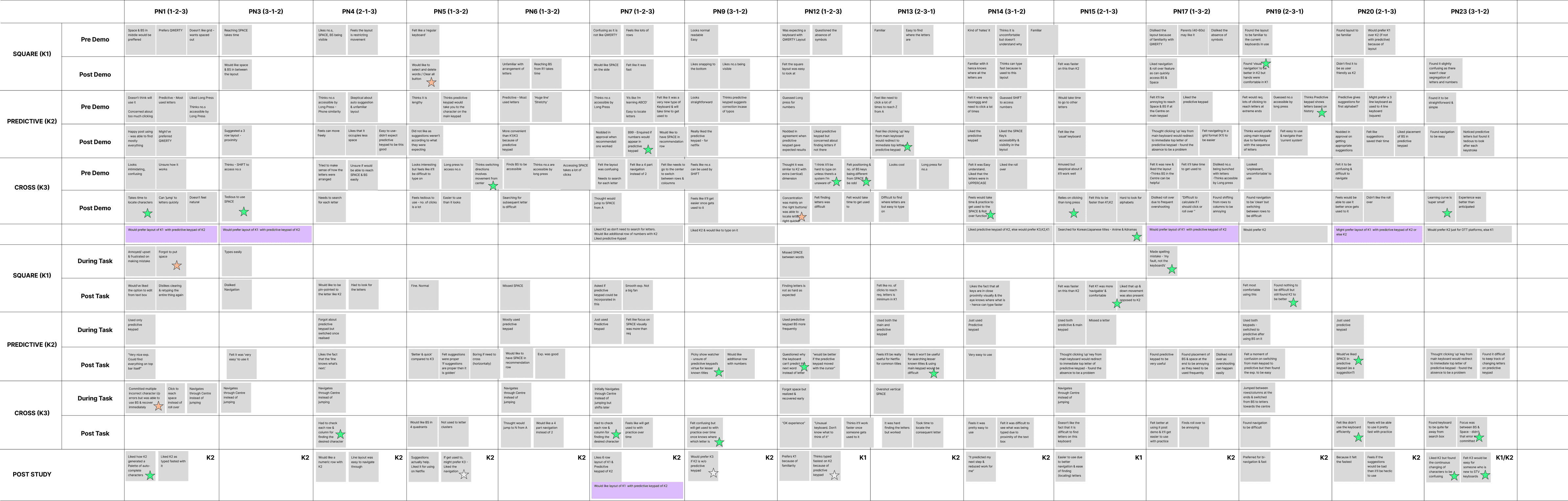 Subjective impressions of data collected from participants were aggregated into a table and organised in accordance with the corresponding keyboards.
