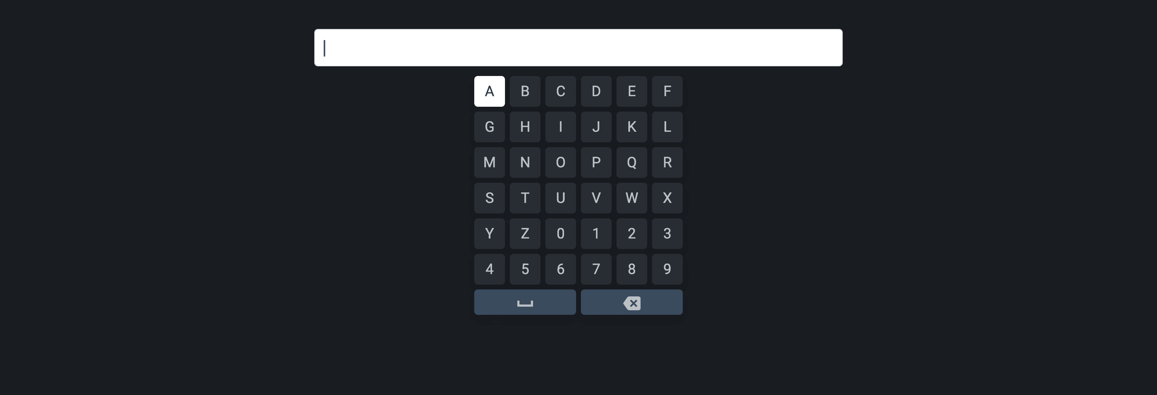 This keyboard follows a 6*6 grid layout wherein the characters are arranged in an alphabetic