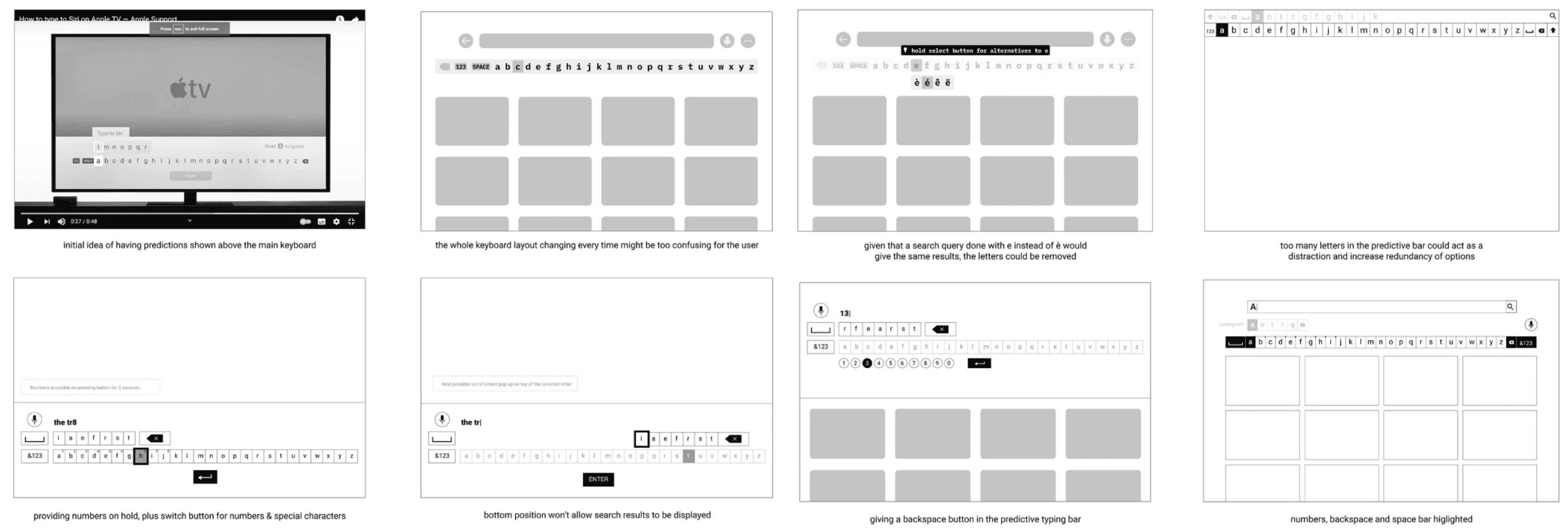 The keyboard was spatially divided into layouts mimicking the four directional buttons on the remote.